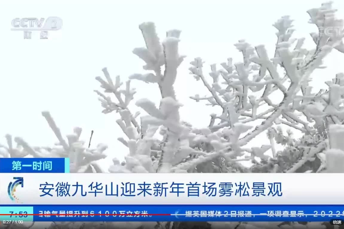 安徽九華山迎來新年首場霧凇景觀