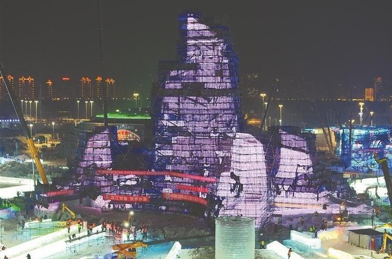 冰雪大世界主塔“冰燈啟夢”封頂