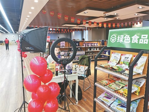 簽約網(wǎng)紅現(xiàn)場(chǎng)直播帶貨。崔佳欣 攝