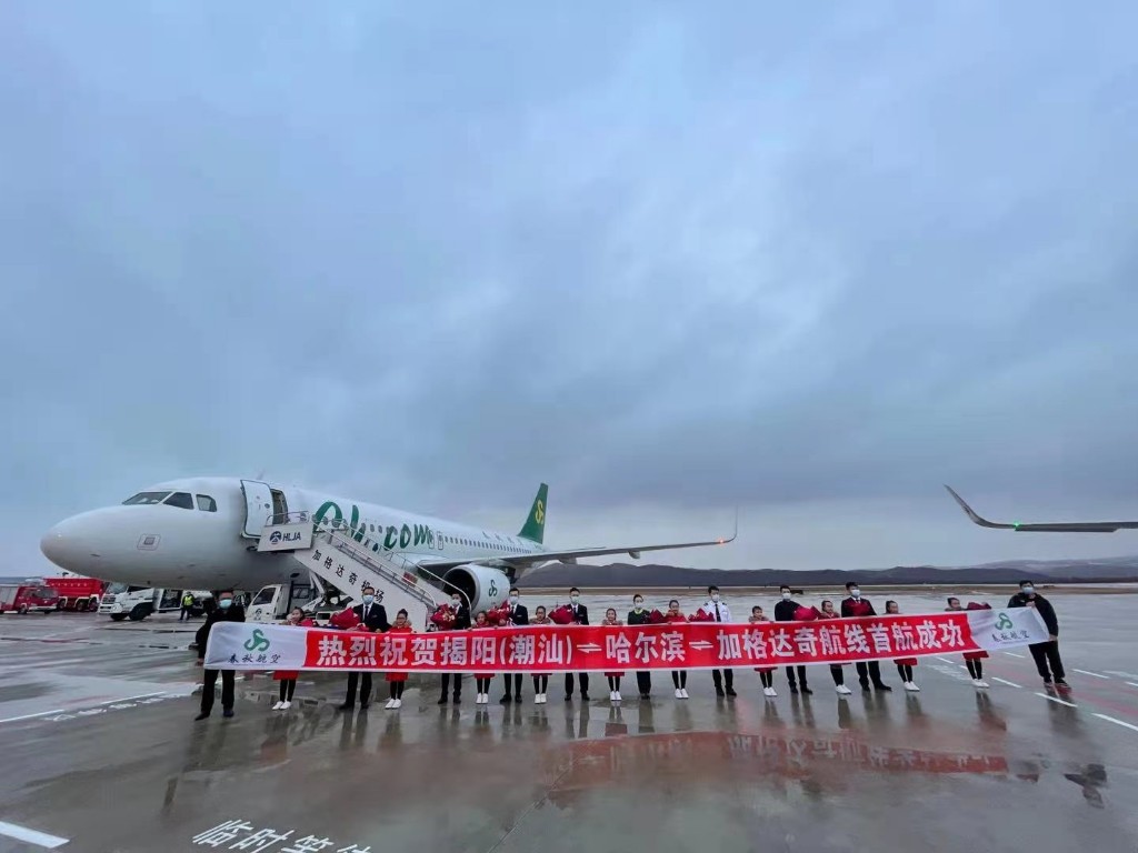 3月29日17時(shí)15分,在陣陣的引擎轟鳴聲中,由廣東揭陽(潮汕)飛往加格達(dá)奇的首個(gè)航班準(zhǔn)時(shí)平穩(wěn)地降落在加格達(dá)奇嘎仙機(jī)場(chǎng),標(biāo)志著加格達(dá)奇—哈爾濱—揭陽(潮汕)航線首航成功。30日,春秋航空還將首航加格達(dá)奇—哈爾濱—上海航線。