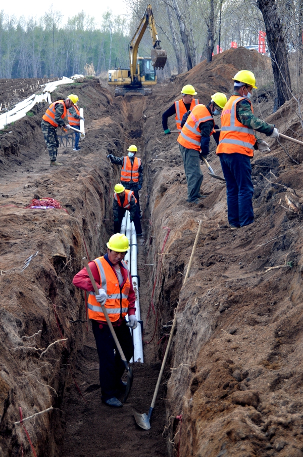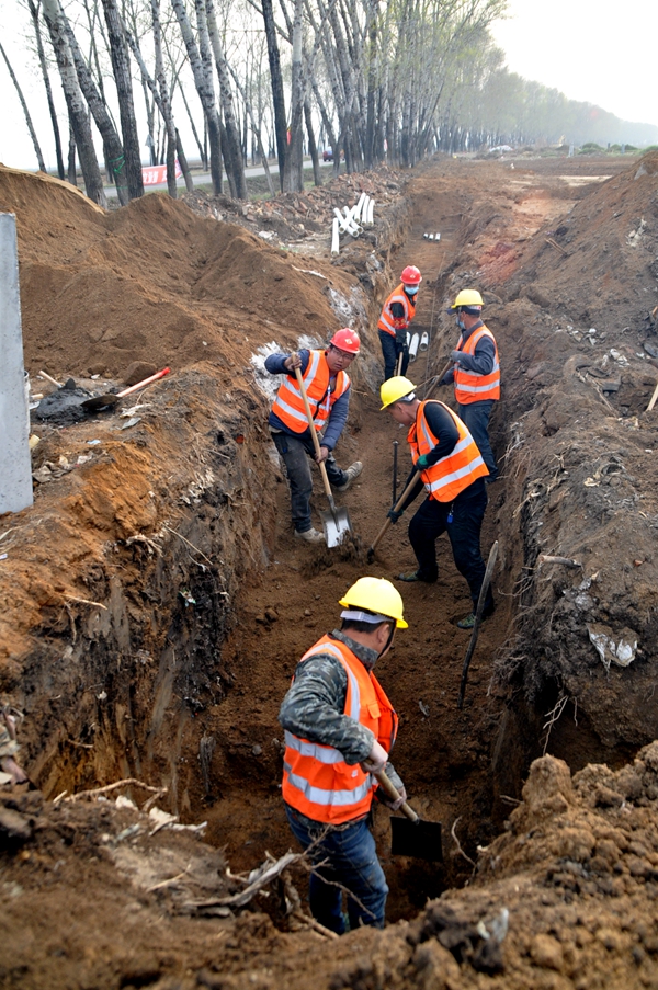 鶴崗市智能化城鄉(xiāng)通信微管廊項目施工現(xiàn)場“五·一”節(jié)熱火朝天