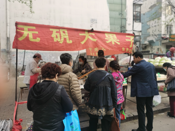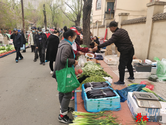 早市的吸引力在于“看”。早市上,各攤主會(huì)想各種各樣的方式招攬顧客,有的會(huì)用廣告牌,有的會(huì)吆喝。早市上的商業(yè)運(yùn)作方式也非常有趣,比如現(xiàn)場(chǎng)擠羊奶,旁邊拴幾頭奶羊,當(dāng)招牌;賣刀切面的現(xiàn)場(chǎng)切,炸油條的現(xiàn)場(chǎng)炸,都是明檔手工,這幾乎是大多數(shù)早市商家的促銷手段。也有推銷老花鏡的,賣衣服的,會(huì)現(xiàn)場(chǎng)吆喝“正宗商品專柜,清倉(cāng)促銷”——這大概是現(xiàn)在“直播帶貨”的線下模式。住在早市附近的居民,有的會(huì)在樓上用繩子吊下個(gè)籃子,讓攤主把東西放到籃子里,直接拽上去。