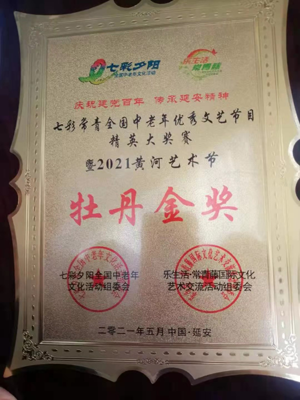 5月15日,塔河森林之聲合唱團(tuán)應(yīng)邀參加了全國(guó)老齡委在陜西延安舉辦的“慶祝建黨百年·傳承延安精神”全國(guó)中老年優(yōu)秀文藝節(jié)目精英大獎(jiǎng)賽暨2021年黃河藝術(shù)節(jié),并榮獲牡丹金獎(jiǎng)(最高獎(jiǎng)項(xiàng))和優(yōu)秀組織獎(jiǎng)。