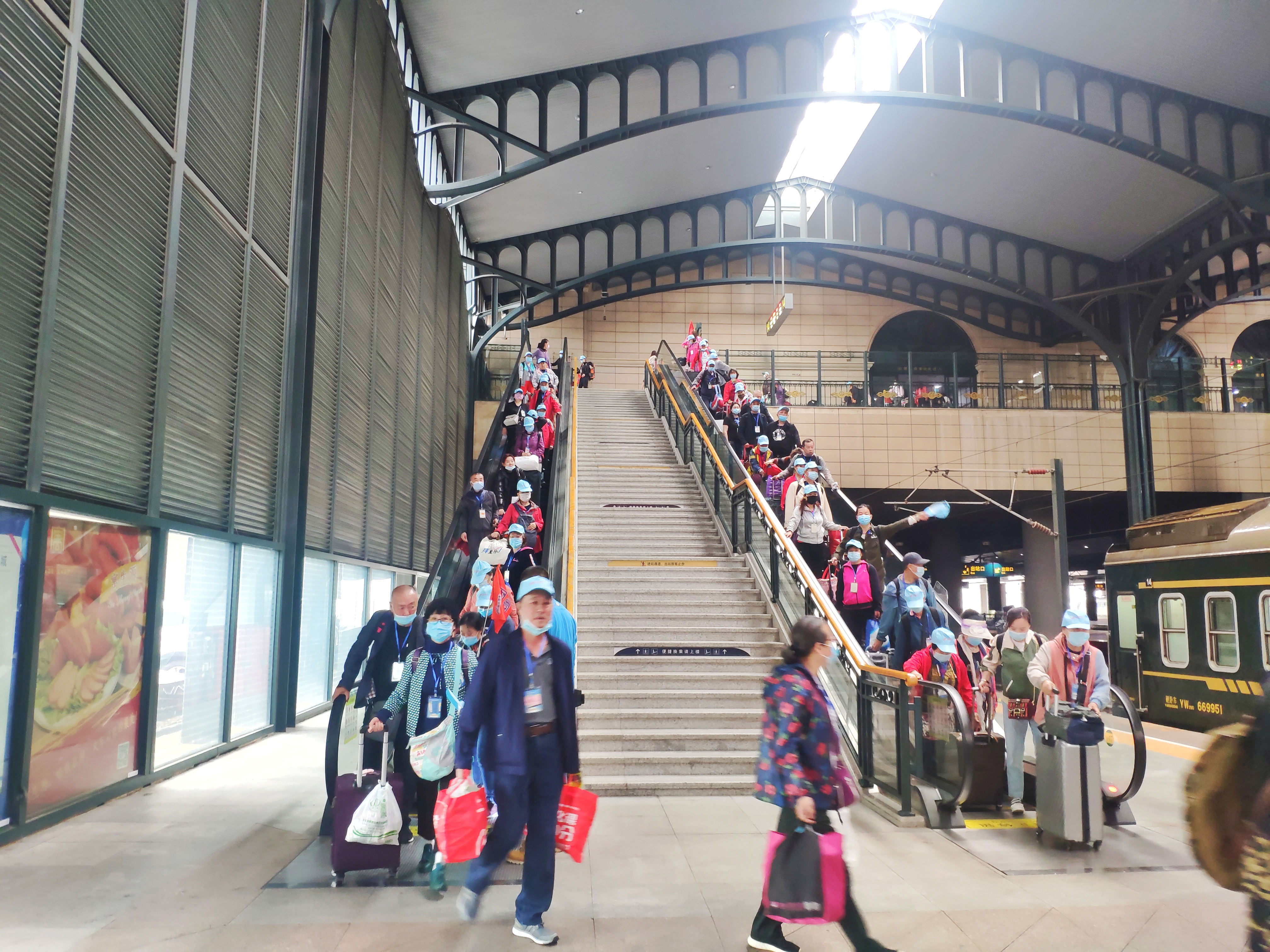 為確保旅游專列順利開行,鐵路部門優(yōu)化專列運行方案,精心抽調運營車體,組織業(yè)務熟練的客運乘務人員擔當值乘,統(tǒng)籌做好站車疫情防控和鐵路運輸服務工作。嚴格落實站車測溫、通風消毒、設置應急隔離席位等各項防疫措施,全程為游客配發(fā)防疫口罩、消毒濕巾、防護手套,隨團保健醫(yī)生將每天為游客測溫,提供健康保障。