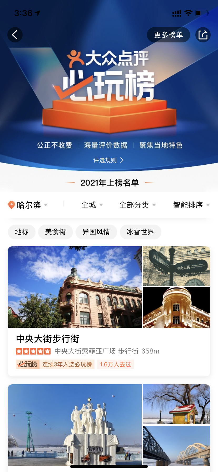 龍頭新聞?dòng)崳?span style="color: rgb(34, 34, 34); text-align: justify; text-indent: 51.84px;">記者孫思琪)日前,大眾點(diǎn)評發(fā)布2021年“必住榜”“必玩榜”,全國45個(gè)城市共計(jì)986家酒店、939個(gè)玩樂目的地最終上榜。哈爾濱16個(gè)玩樂目的地入選“必玩榜”。