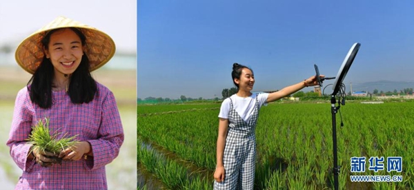 拼版照片:左圖為程玉嬌在太原市晉源區(qū)三家村水稻田里;右圖為程玉嬌在水稻田里進行直播(7月9日攝)。今年24歲的程玉嬌2019年留學回國后,選擇了返鄉(xiāng)創(chuàng)業(yè)發(fā)展稻魚菜綜合種養(yǎng)農(nóng)業(yè)。晉源區(qū)三家村出產(chǎn)的大米遠近聞名,程玉嬌在社交平臺上開通了雙語直播,在科普水稻知識的同時拓展銷售渠道,不僅生意做得風風火火,自己也變成了小有名氣的“網(wǎng)紅”。