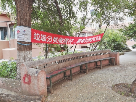 安和社區(qū)的垃圾分類宣傳條幅。