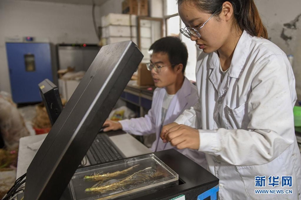 8月2日,在吉林省梨樹縣四棵樹鄉(xiāng)三棵樹村“科技小院”,中國農(nóng)業(yè)大學(xué)博士研究生沙野(左)和在讀碩士郭雯清掃描玉米根系樣本。