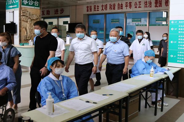 郭宏偉一行先后視察附屬第一醫(yī)院門診預(yù)檢分診處、呼吸科門診、口腔科門診、耳鼻咽喉科門診、心血管病一科病房、核酸采集處、省重大疫情中西醫(yī)結(jié)合救治基地建設(shè)項(xiàng)目施工工地等,并對醫(yī)院在當(dāng)前疫情形勢下,積極行動(dòng),主動(dòng)作為,迅速查短板、補(bǔ)漏點(diǎn),防患于未然,堅(jiān)決防止院內(nèi)感染所做出的全方位努力給予高度認(rèn)可和充分肯定。