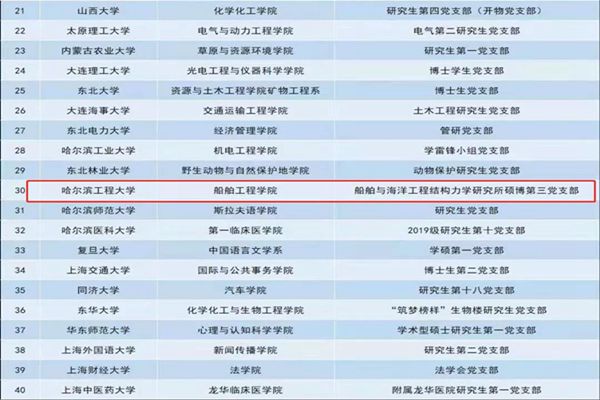 黑龍江經(jīng)濟(jì)網(wǎng)訊(全媒體見習(xí)記者 董廣碩 商祺)近日,教育部公布第二批全國(guó)高校“百個(gè)研究生樣板黨支部”和“百名研究生黨員標(biāo)兵”單位名單,哈爾濱工程大學(xué)船舶學(xué)院船舶與海洋工程結(jié)構(gòu)力學(xué)研究所碩博第三黨支部,以及智能學(xué)院博士研究生李明非榜上有名!