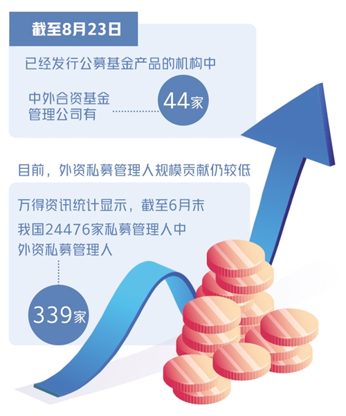 在外資獨(dú)資公募基金發(fā)行之前,我國(guó)境內(nèi)已有多家中外合資的公募基金公司、外資私募基金公司。萬得資訊統(tǒng)計(jì)顯示,截至8月23日,已經(jīng)發(fā)行公募基金產(chǎn)品的機(jī)構(gòu)中,中外合資基金管理公司有44家,其中大部分合資公司被外資持有49%的股份,合資公募基金公司發(fā)展兩極分化的狀態(tài)比較明顯。