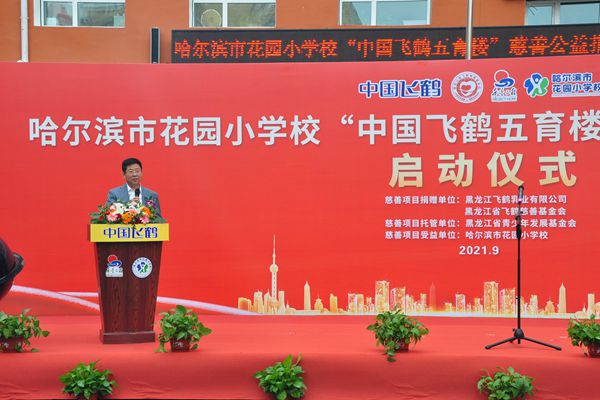 飛鶴乳業(yè)黨委書(shū)記、飛鶴慈善基金會(huì)理事長(zhǎng)朱天龍在啟動(dòng)儀式上說(shuō),在中秋國(guó)慶即將到來(lái)之際,我們滿懷喜悅的心情,在百年名校哈爾濱市花園小學(xué)校舉行“中國(guó)飛鶴五育樓”公益慈善助教項(xiàng)目啟動(dòng)儀式,這是飛鶴乳業(yè)履行社會(huì)責(zé)任、情系教育事業(yè)的又一項(xiàng)助教工程。在黑龍江省貫徹落實(shí)黨中央“雙減”政策,深入推進(jìn)五育并舉,促進(jìn)學(xué)生德智體美勞全面發(fā)展的重要時(shí)期。飛鶴向哈爾濱市花園小學(xué)捐贈(zèng)625萬(wàn)元,用于花園小學(xué)“五育樓”項(xiàng)目改造,這是一項(xiàng)利在當(dāng)代,功在千秋的公益慈善助教項(xiàng)目,旨在更好地優(yōu)化我省基礎(chǔ)教育教師學(xué)習(xí)培訓(xùn)環(huán)境,為花園小學(xué)教學(xué)提供更好的辦學(xué)條件,也是助力黑龍江省基礎(chǔ)教育的改革。省教育廳副廳長(zhǎng)姜同河、團(tuán)省委副書(shū)記張濤對(duì)飛鶴乳業(yè)的慈善助教善舉給予充分的肯定和贊許?;▓@小學(xué)校長(zhǎng)曹永鳴代表學(xué)校的孩子們向飛鶴乳業(yè)的慈善捐助表達(dá)深深的謝意!