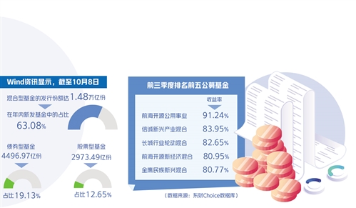 今年前三季度,公募基金整體業(yè)績表現(xiàn)優(yōu)異。金牛理財(cái)網(wǎng)統(tǒng)計(jì)顯示,今年前三季度,納入統(tǒng)計(jì)的主動(dòng)權(quán)益基金(主動(dòng)股票基金673只、混合型基金5634只)平均收益率為6.48%,200余只公募開放式基金收益率超過30%,其中,53只基金收益率超過50%,22只基金收益率超過60%,14只基金收益率逾70%。