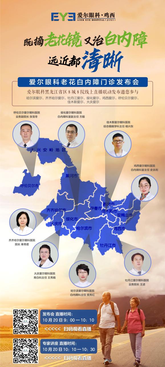 10月20日上午9點(diǎn)整,愛爾眼科黑龍江省區(qū)8城8院線上直播聯(lián)動發(fā)布會邀您參與,帶您直擊老花白內(nèi)障手術(shù),為中老年人群的優(yōu)質(zhì)視野和高品質(zhì)生活保駕護(hù)航。(愛爾眼科)