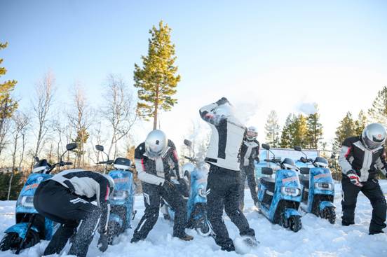 初冬的最冷小鎮(zhèn)乍暖還寒,山上景區(qū)的部分道路被白雪覆蓋,雅迪電動車騎手及冰雪穿越愛好者們在小白山巔、蒼山石林間、馴鹿園內(nèi)暢快穿行。