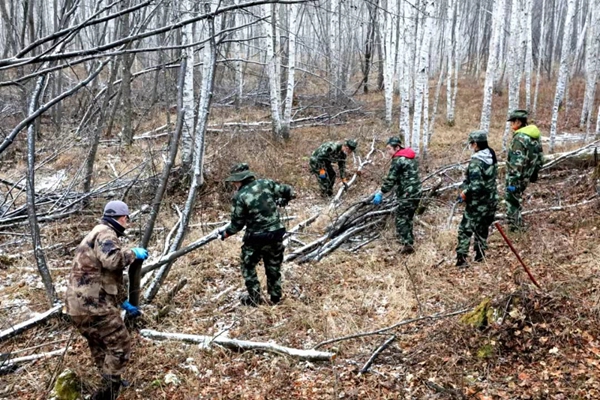 塔河林業(yè)局組織機關科室400余名黨員干部開展森林撫育工作,助力企業(yè)增效、職工增收(段明琦/攝)
