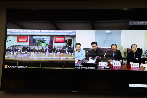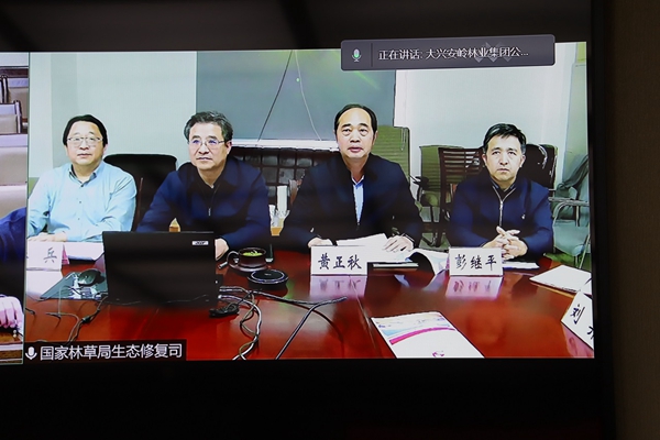 簽約儀式以視頻的形式召開。生態(tài)司司長、司支部書記張煒,副司長(正司局級)、司支部副書記黃正秋,生態(tài)司二級巡視員、司支委組織委員潘兵,綜合處處長、一級調(diào)研員彭繼平,森林城市處處長、一級調(diào)研員、司支委紀(jì)檢委員楊春,生態(tài)處副處長、三級調(diào)研員、司支委學(xué)習(xí)委員劉羿,在國家林草局主樓501房間,集團(tuán)公司黨委常委、副總經(jīng)理劉志,集團(tuán)公司生態(tài)修復(fù)管理處處長劉繼明,集團(tuán)公司黨委老干部處(組織部副處長)范學(xué)利,阿木爾林業(yè)局黨委書記胡守慶,阿木爾林業(yè)局黨委副書記、局長韓鳳泉,阿木爾林業(yè)局黨委副書記呂光鑫,阿木爾林業(yè)局黨委委員、組織部部長王立昆在大興安嶺林業(yè)集團(tuán)公司視頻會議室,參加了會議。