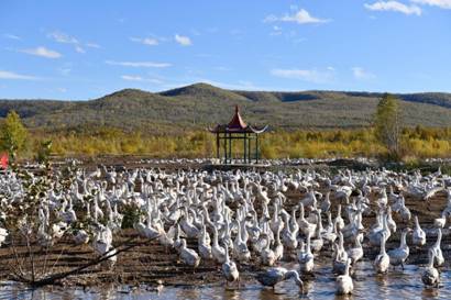 新林林業(yè)局依托當(dāng)?shù)厮葚S美的生態(tài)環(huán)境優(yōu)勢,扶持開展“生態(tài)鵝”養(yǎng)殖項目,為職工開拓了增收致富的新途徑(崔紅霞 攝)