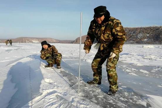 為進一步做好防境外疫情輸入工作,最大限度的保護好人民群眾的生命健康安全,當地政府決定在界江沿線架設防疫隔離墻,阻擋境外物種帶入病毒。紅星林場在接到任務后,迅速組織人力物力投入戰(zhàn)斗。冰封的江面在冬季暗藏危機,看似一平如鏡的冰下有很多封凍時形成的漏斗,白雪覆蓋下的區(qū)域更是潛藏著無數的冰縫,一腳踏進去就會造成嚴重的扭傷,而在冰面上放線拉網需要每天抬著幾十斤的鐵蒺藜線軸往返十幾里路程,行進在冰面路段上一步一滑,加固鐵線時還要時刻小心不被鐵蒺藜劃傷,鉆孔、插樁也要時刻防止產生大面積的冰裂。