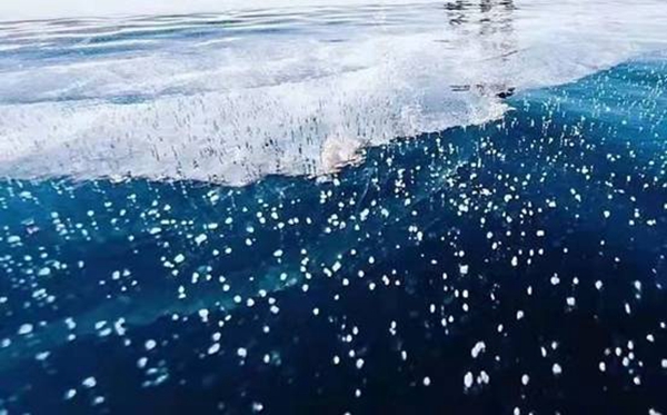 “冰泡”是由湖底植物釋放出的沼氣(甲烷)在上升過程中,因極寒氣溫導致冰封速度過快,被“鎖”在冰層之中而形成。目前,全世界僅有3個著名的冰泡湖,北極漠河冰泡湖是中國最北唯一的“冰泡奇觀”。觀音山“冰泡”晶瑩剔透、造型奇特、惟妙惟肖,有的形似“飛碟”一飛沖天,有的形似“珊瑚”美輪美奐,有的形似“觀音”端坐蓮臺。形態(tài)各異的“冰泡”形成一幅幅精美的冰雪藝術(shù)畫卷,成為漠河冬季最火爆的網(wǎng)紅打卡地。
