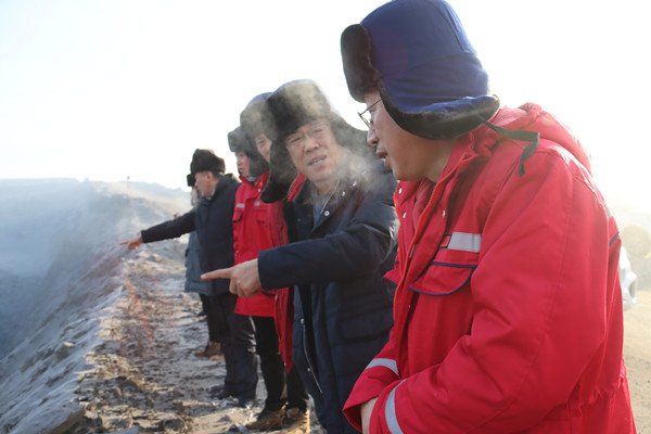 圖為古蓮河露天煤礦黨委書記帶領相關人員深入剝采一線檢查安全生產(chǎn)工作