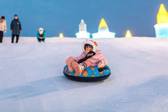 冰雪大世界園區(qū)帶給游客速度與激情的項(xiàng)目還有雪圈,家長(zhǎng)和孩子可以一同玩耍,處處充滿歡聲笑語(yǔ)。今年的雪圈分為兒童雪圈和趣味雪圈,無(wú)法乘坐大滑梯的孩子們可以在兒童雪圈感受飛一般的速度,絕對(duì)不虛此行。