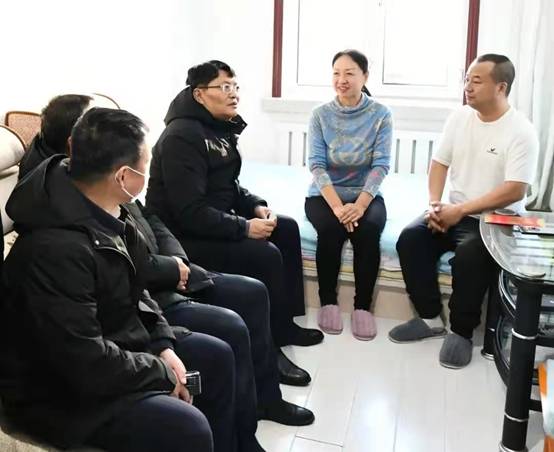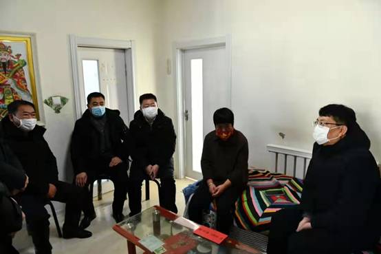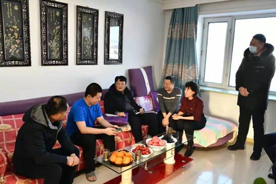 新林林業(yè)局黨委副書記、局長張鶴松一行在困難職工劉玉峰家中走訪慰問(趙文財 攝)