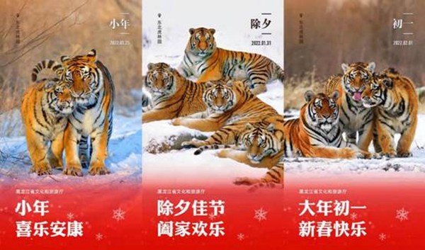 2022年是農歷壬寅虎年,黑龍江省文旅廳適時提出“黑龍江——東北虎的故鄉(xiāng)”、“虎年就來黑龍江”等宣傳口號,通過系列海報、趣味表情包、互動H5、動漫短視頻、創(chuàng)意長圖等多種方式宣傳推廣冬季旅游產(chǎn)品。