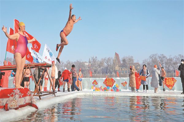 2月1日,正月初一。哈爾濱市冬泳協(xié)會的幾十位隊員,在會長張友慶的帶領下,以冬泳的方式,迎接壬寅虎年的到來。松花江上的冬泳場,披紅掛彩,貼上了福字。隊員們輪番從高臺、低臺上躍身而下,在江水中暢游。張友慶表示,大年初一,哈爾濱冬泳人響應全民健身的號召,以冬泳的方式,積極參與到冰雪運動中來,以健康的身體、飽滿的精神,迎接北京冬奧會。