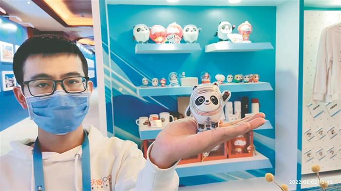 在新聞中心一樓中庭及走廊設(shè)有2022年冬奧會熱銷特許商品展區(qū),為媒體提供線上定制和購買特許商品服務(wù)。遺憾的是經(jīng)過1日一天的熱賣,幾乎所有“冰墩墩”玩偶都已告罄,可見媒體記者也敵擋不住超級可愛的冰墩墩的魅力。