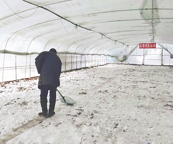 雪后清理水稻育苗大棚積雪。圖片由龍江