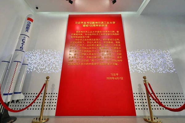 走進(jìn)“哈工大中心”,首先映入眼簾的就是習(xí)近平總書(shū)記致哈工大建校100周年賀信。學(xué)校通過(guò)該中心的展示持續(xù)深入宣講宣傳習(xí)近平總書(shū)記賀信精神,以杰出人才培養(yǎng)和國(guó)之重器打造的生動(dòng)故事引領(lǐng)青少年勵(lì)志成才,以航天第一?!凹獗蔽幕I(lǐng)社會(huì)文化發(fā)展。以哈工大在黨的領(lǐng)導(dǎo)下取得的歷史成就為主要內(nèi)容,創(chuàng)新策劃系列展覽展示和互動(dòng)體驗(yàn),展示哈工大與中國(guó)航天同頻共振66年的發(fā)展歷史。