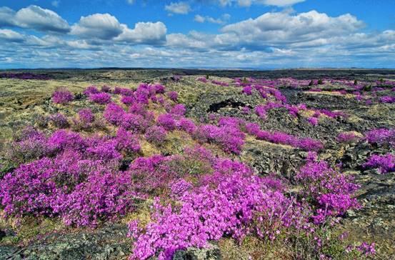 另一獨具北國風(fēng)光特色的是“興安杜鵑”,又稱“映山紅”“達(dá)子香”“達(dá)達(dá)香”,粉紅色的花朵與純白色的雪山是黑龍江高山叢林之間的春季奇景。其中,在牡丹江鏡泊湖景區(qū)及周邊熔巖臺地盛開的杜鵑花,林在石上、石在花中、花在石上,石海、花海、林海形成罕見的自然奇觀。此外,齊齊哈爾龍江縣的杜鵑山景區(qū)、以興安杜鵑為市花的伊春小興安嶺、雙鴨山的大頂子山、黑河的錦河大峽谷、大興安嶺的百泉谷生態(tài)旅游風(fēng)景區(qū)等地,都可以探尋到興安杜鵑的芳蹤。