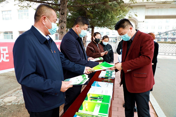 阿木爾林業(yè)局在人員密集場所設(shè)立宣傳站,向職工群眾宣傳森林認(rèn)證相關(guān)知識(王力 攝)