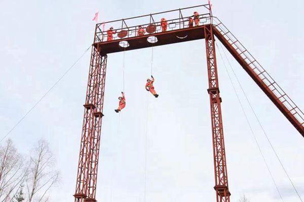 訓練過程中,中隊長馬振濤對高空索滑需要注意的事項和方法方式進行了詳細講解,并將在訓練過程中容易出現(xiàn)的錯誤動作,結(jié)合實際訓練做了現(xiàn)場演示。指導參訓人員克服恐懼心理,嚴格按照理論輔導、教學大綱、索滑降訓練的步驟進行科學訓練。堅持由簡到繁、由易到難、循序漸進的原則,對安全背帶穿戴、索控器具裝卸繩、不同高度滑降、遇到突發(fā)問題快速處理等內(nèi)容進行了系統(tǒng)訓練。一次次繩結(jié)、一次次索滑降、一次次健步如飛……千錘百煉中隊員們逐步熟練了滑降的操作流程,克服了恐懼心理,取得了明顯成效。