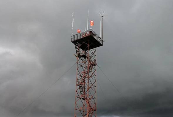 安裝在呼中林業(yè)局施業(yè)區(qū)內(nèi)瞭望塔頂?shù)膯误w拒雷設(shè)備(徐志偉攝)