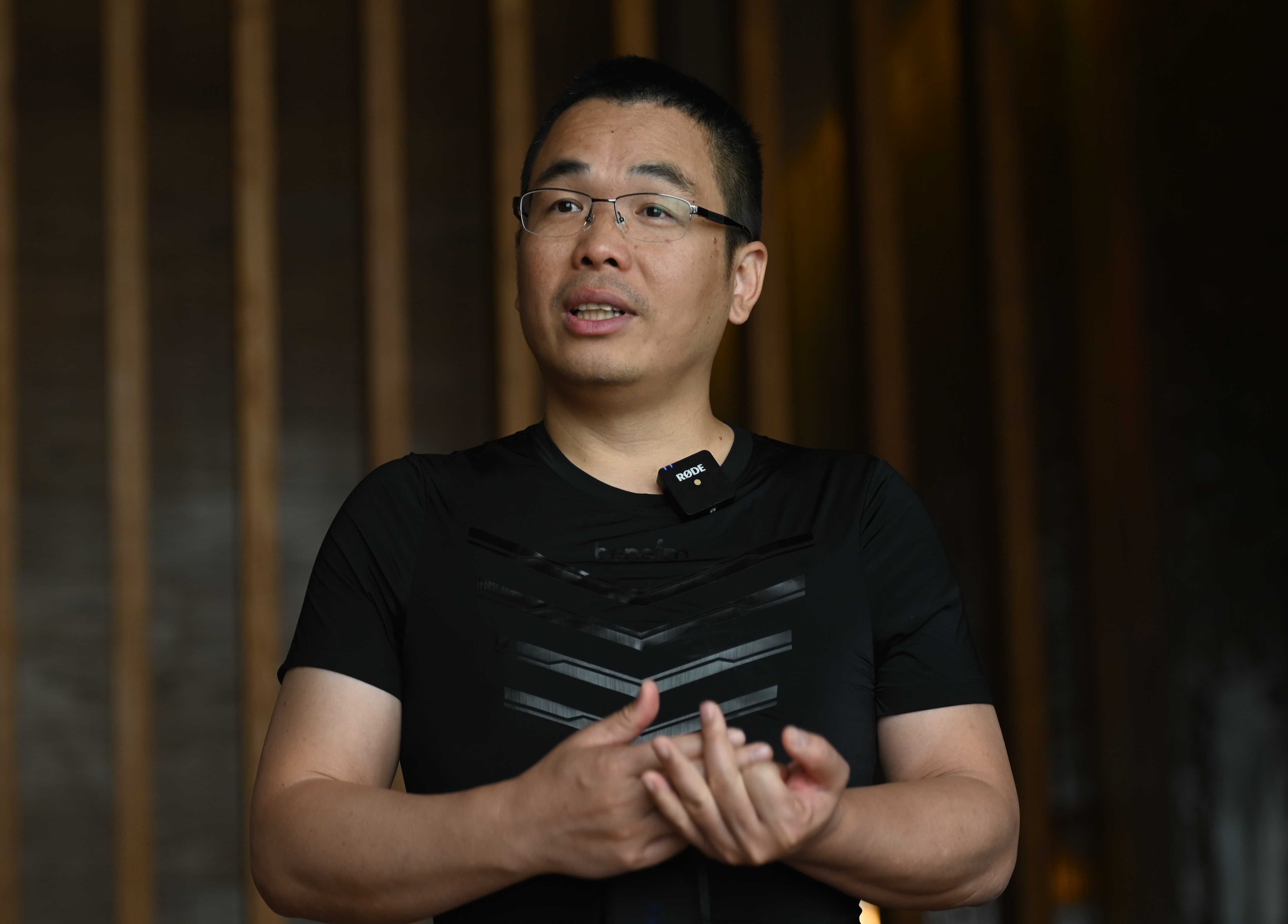 “我身上穿的就是一件擁有二類醫(yī)療器械證十二導(dǎo)智能心電衣,這件衣服上面帶有柔性智能傳感器,這是一個(gè)動(dòng)態(tài)心電記錄儀,里面有手機(jī)卡,當(dāng)衣服開始工作的時(shí)候,數(shù)據(jù)就采集到了,數(shù)據(jù)采集后信息會(huì)匯集到我手中的控制盒里面,控制盒通過手機(jī)卡傳輸?shù)椒?wù)器上面,在服務(wù)器上面通過AI算法進(jìn)行處理,可以為使用者提供心臟預(yù)警,降低猝死風(fēng)險(xiǎn)?!卑谙蛴浾哒故舅砩洗┑氖?dǎo)智能心電衣時(shí)說。