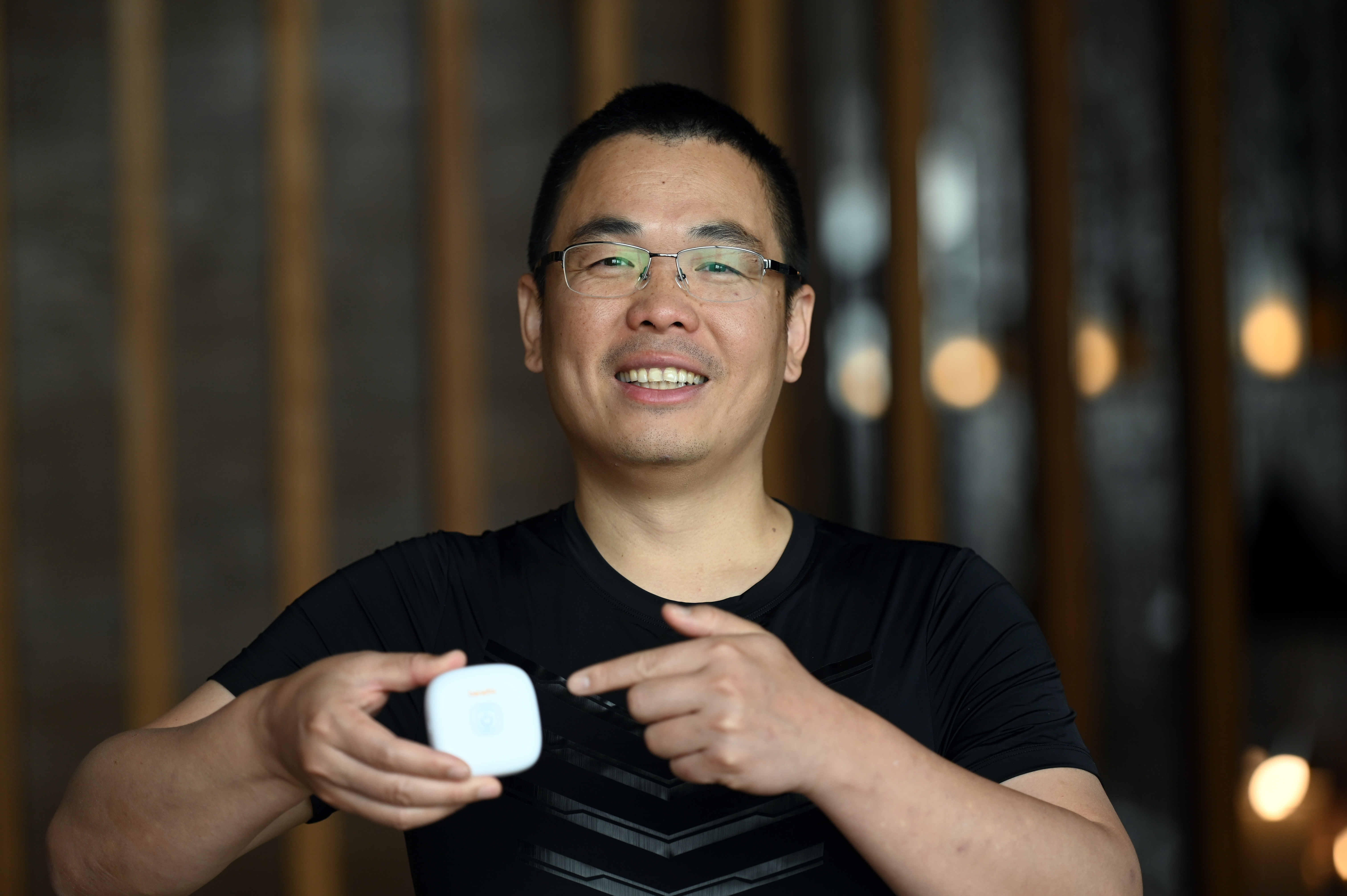 包磊展示智能心電衣里面的控制盒