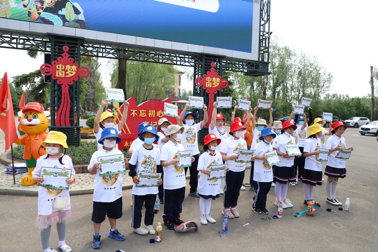 活動最后,主辦方為小朋友們發(fā)放研學游紀念證書和六一兒童節(jié)禮物。小朋友們收獲豐富的知識和快樂的體驗,戀戀不舍地結束了此次東北虎林園研學游活動。