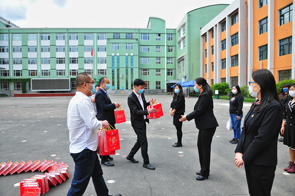 上午10時,活動開始。哈爾濱市第一一三中學操場上,初四年級各班班任整齊列隊,臉上洋溢著微笑。愛心企業(yè)踐行社會責任,為老師送上濃濃祝福和滿滿心意?;顒与m簡短,但愛與溫暖在每名教師心頭蕩漾,涌動著深情厚誼。