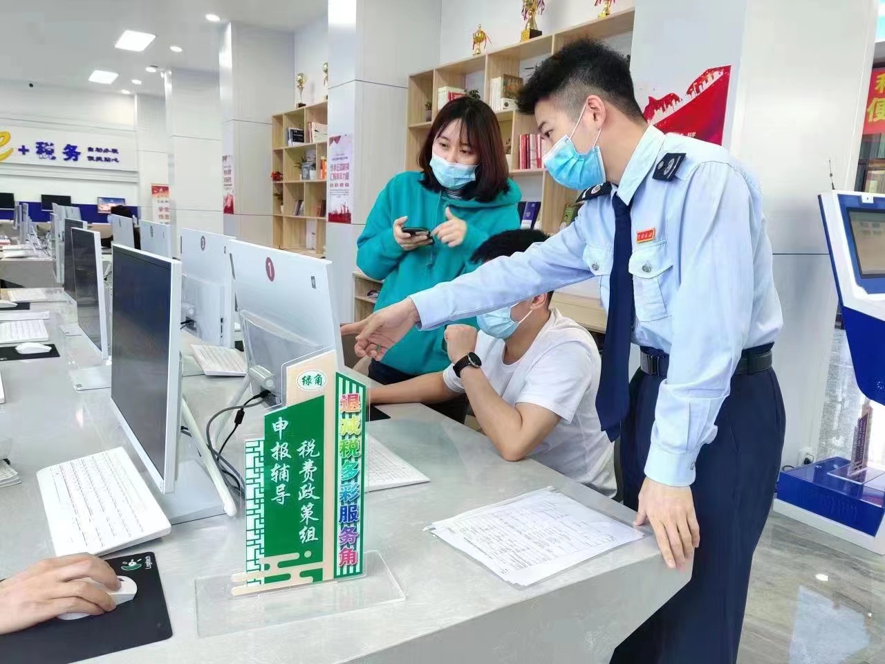 服務(wù)角暖人心,“政策直達”快起來。為實現(xiàn)新的組合式稅費支持政策直達快享,該局在辦稅服務(wù)廳開設(shè)退稅減稅功能服務(wù)專區(qū),在醒目位置設(shè)置“退稅減稅多彩服務(wù)角”“先鋒云坐席”。退稅減稅多彩服務(wù)角,細化分為六個功能服務(wù)角: 政策宣傳紅角、難點攻堅藍角、申報輔導綠角、退稅審批金角、暖心服務(wù)橙角和意見征集紫角,由多彩黨員先鋒隊中的各部門、各支部業(yè)務(wù)骨干(紅、藍、綠、金、橙、紫先鋒)輪流進駐各個服務(wù)角,分別開展專項退減稅服務(wù),做到按企施策到位、優(yōu)惠政策直達到位、精簡流程服務(wù)到位,“真金白銀”快享到位。“先鋒云坐席”由辦稅服務(wù)廳2個黨員先鋒崗組成,專職負責線上退稅減稅服務(wù)。退稅減稅功能服務(wù)專區(qū)的建立,既做到了內(nèi)部協(xié)同,又兼顧了內(nèi)外銜接;既做到了“在大廳專區(qū)有專人快速辦理退稅減稅專事”,又打通了面向社會的服務(wù)通道。