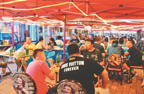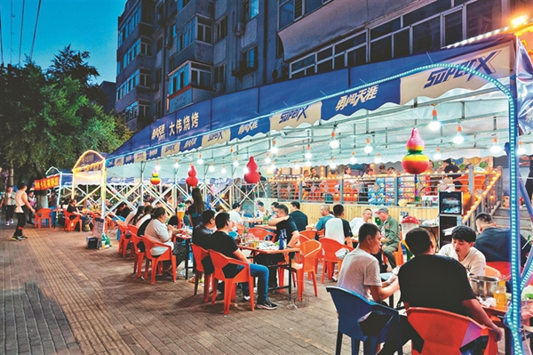 夜幕降臨,冰城街路的大排檔里,人們一邊吃著燒烤海鮮,一邊喝著啤酒,談天說(shuō)地,不亦樂(lè)乎……仲夏六月,在大排檔允許外擺政策的推動(dòng)下,夏日“夜經(jīng)濟(jì)”越來(lái)越火熱,冰城濃濃的“煙火氣”回歸。大排檔既豐富了市民生活,冰城的快樂(lè)消費(fèi)也開(kāi)始了。