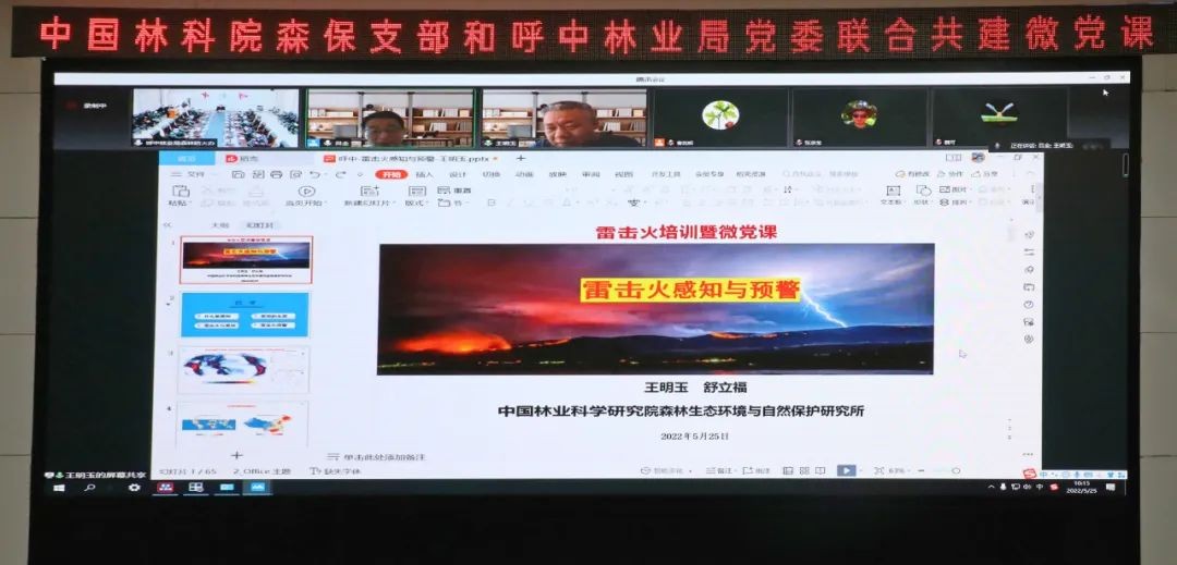 此次活動(dòng)由中國(guó)林科院森保學(xué)科黨支部書記呂全主持,教授舒立福、學(xué)院研究所副所長(zhǎng)趙文霞、研究員王小藝出席。中國(guó)林科院教授王明玉、趙鳳君、李偉克作雷擊火防范和預(yù)警相關(guān)科教專題授課,聯(lián)建雙方就如何推動(dòng)黨建和業(yè)務(wù)雙促進(jìn)、雙提升,展開(kāi)了深入交流。