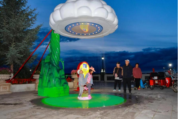 人氣最高的應(yīng)數(shù)“千年云雨”燈組,運(yùn)用了水流循環(huán)系統(tǒng)與燈光相結(jié)合,形成了可互動、可參與、可觀賞的趣味云雨再現(xiàn),引發(fā)人們對千年前恐龍時代自然天象的無限聯(lián)想,體現(xiàn)了古與今一脈相承、生靈與自然和諧共處。