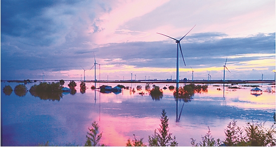 綏濱縣“平原風(fēng)電之都”高聳旋轉(zhuǎn)的風(fēng)車(chē)。