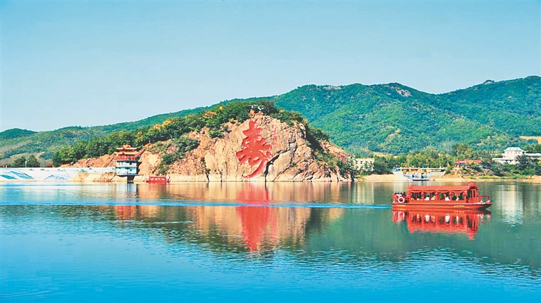延壽縣玉河鎮(zhèn)位于2022年度“中國(guó)天然氧吧”延壽縣境內(nèi),旅游資源豐富,內(nèi)有“長(zhǎng)壽山國(guó)家森林公園”“長(zhǎng)壽湖國(guó)家水利風(fēng)景區(qū)”,其中長(zhǎng)壽湖景區(qū)的核心“鶴壽峰”山峰正面摩崖石刻為乾隆御筆所書(shū)“壽”字,行草陰刻,字高38米,寬18米,字首直指云霄,字腳直踏壁底,是國(guó)內(nèi)最大的石刻“壽”字,堪稱(chēng)“天下第一壽”。神奇的福山壽山地貌、廣袤的森林覆蓋、較高的空氣負(fù)氧離子含量,使得玉河鎮(zhèn)成為沐浴在“中國(guó)天然氧吧”的“福壽之鎮(zhèn)”。