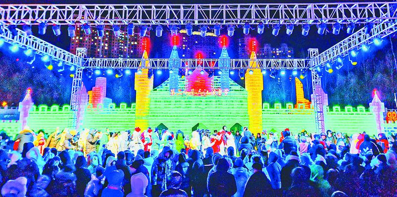 在雪地上潑雪、打鬧,人們身上沾著雪,頭上冒著汗,臉上帶著笑……這里是一片歡樂的海洋。變形金剛、小黃人、冰雪奇緣等以卡通動(dòng)漫為主題的冰雪景觀;還有引進(jìn)最新的滴水燈、玫瑰燈、瀑布燈、星光燈等LED燈光打造的大型打卡燈光秀;更有雪龍?zhí)柣荨⑴雠鲕?、雪人雕塑等娛樂?xiàng)目,這里已經(jīng)成為佳木斯市旅游打卡新地標(biāo)。