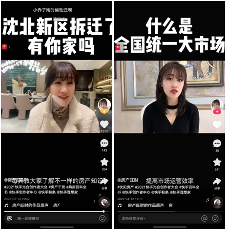 “現在整個沈陽房產市場30%的成交額都是由快手主播提供的,當地的開發(fā)商們也會經常和快手平臺、快手主播合作宣傳,平臺對于房產行業(yè)的約束,也帶著當地房產市場向更加正規(guī)化方向發(fā)展”。