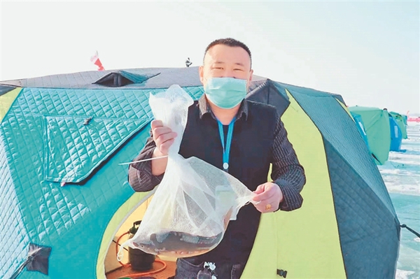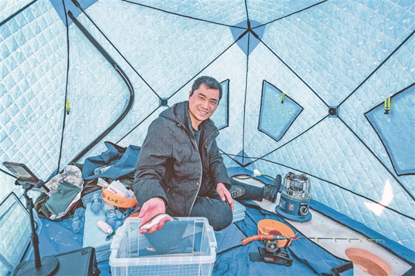 比賽現(xiàn)場(chǎng),冰面上色彩各異的帳篷錯(cuò)落排開,來自我省東部地區(qū)多個(gè)地市的70名釣魚愛好者聚集在此,感受垂釣魅力。當(dāng)日室外最低溫度零下20℃,而冰釣帳篷內(nèi)卻是熱氣騰騰。選手們用小火爐取暖,調(diào)料、打窩,各展技藝,不一會(huì)兒都收獲頗豐。