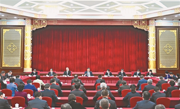 3月6日,中共中央總書記、國家主席、中央軍委主席習(xí)近平看望參加全國政協(xié)十四屆一次會議的民建、工商聯(lián)界委員,并參加聯(lián)組會,聽取意見和建議。中共中央政治局常委、全國政協(xié)十四屆一次會議主席團會議主持人王滬寧,中共中央政治局常委蔡奇、丁薛祥參加看望和討論。新華社記者 謝環(huán)馳攝